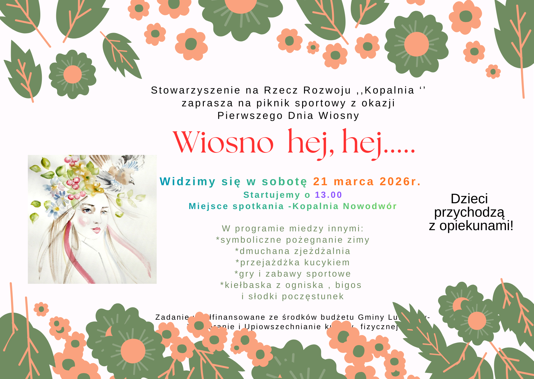 Stowarzyszenie na Rzecz Rozwoju Kopalnia we współpracy z Radą Rodziców Szkoły Podstawowej im. Kard. Stefana Wyszyńskiego w Nowodworze organizuje Piknik Sportowy na powitanie wiosny.
